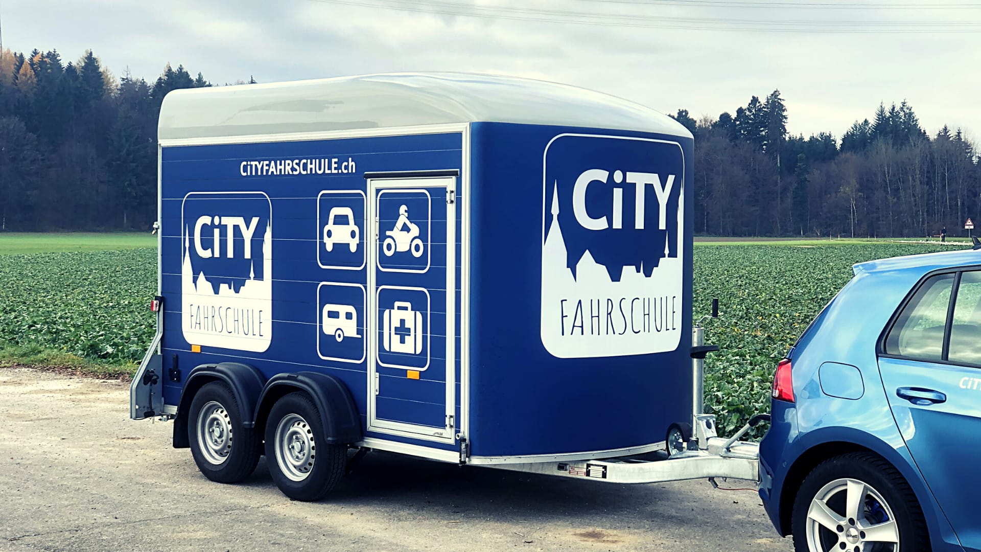 Wir von der City Fahrschule Aarau zeigen dir in unseren Anhänger-Fahrstunden wie du sicher und korrekt mit dem Anhänger unterwegs bist!